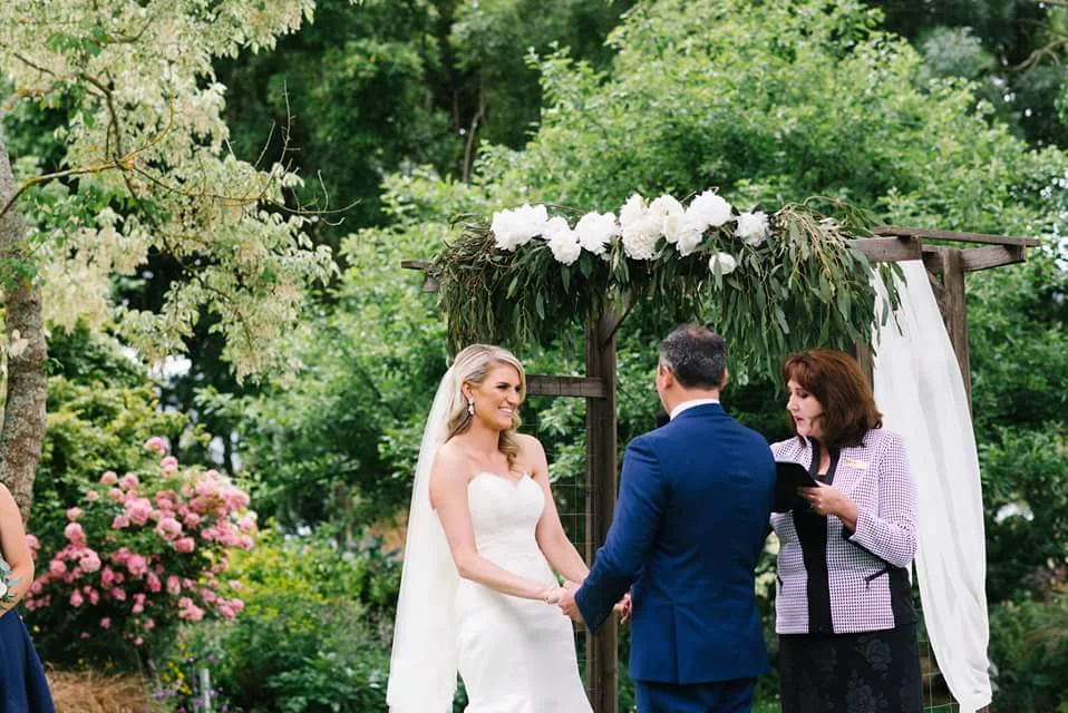 “Thank you so much for having such a big part in our day Karen. You’re easy going, funny and sincere personality felt like you were made to marry us. You put our minds at ease and relaxed us. ”